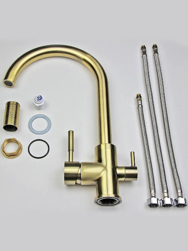 Смеситель для раковины на кухню с фильтром для питьевой воды. Кухонный кран с аэратором для мойки VIKO V-5114 бежевый