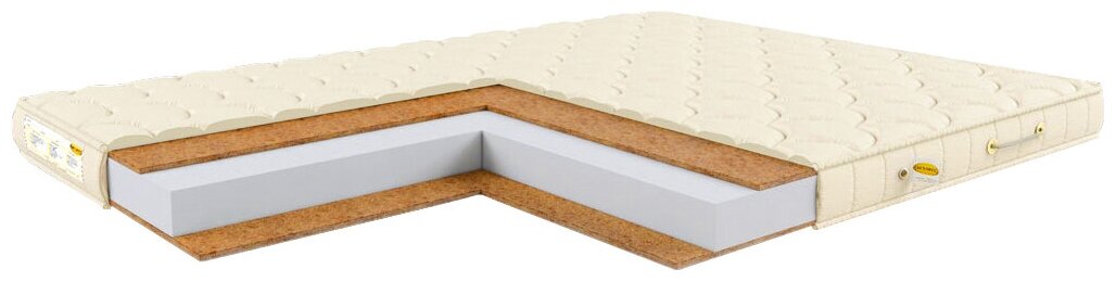 Цена для г. Азов. Высота 10 см. Уровень жесткости выше среднего. Латексированное кокосовое волокно 1 см, моноблок из искусственного латекса 8 см, латексированное кокосовое волокно 1 см. Чехол из хлопкового жаккарда, простеган на холлконе и синтепоне. Максимальный вес на 1 спальное место 110 кг. Магазины в городе Азов смотрите ниже