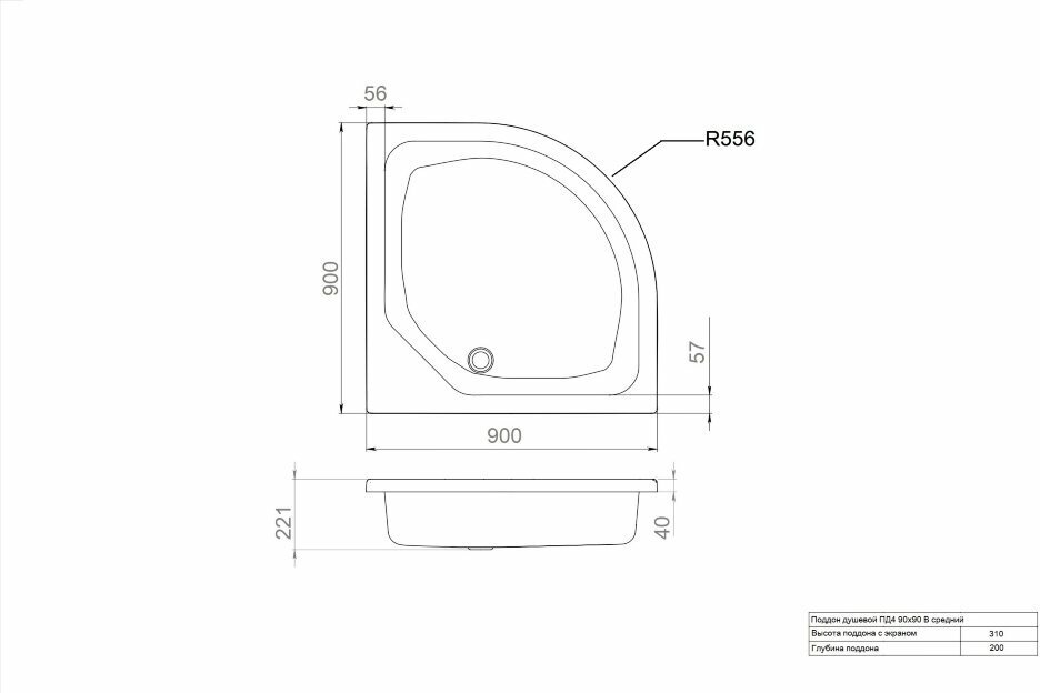 Акриловый душевой поддон TRITON 90х90 полукруг средний 310мм ПД4