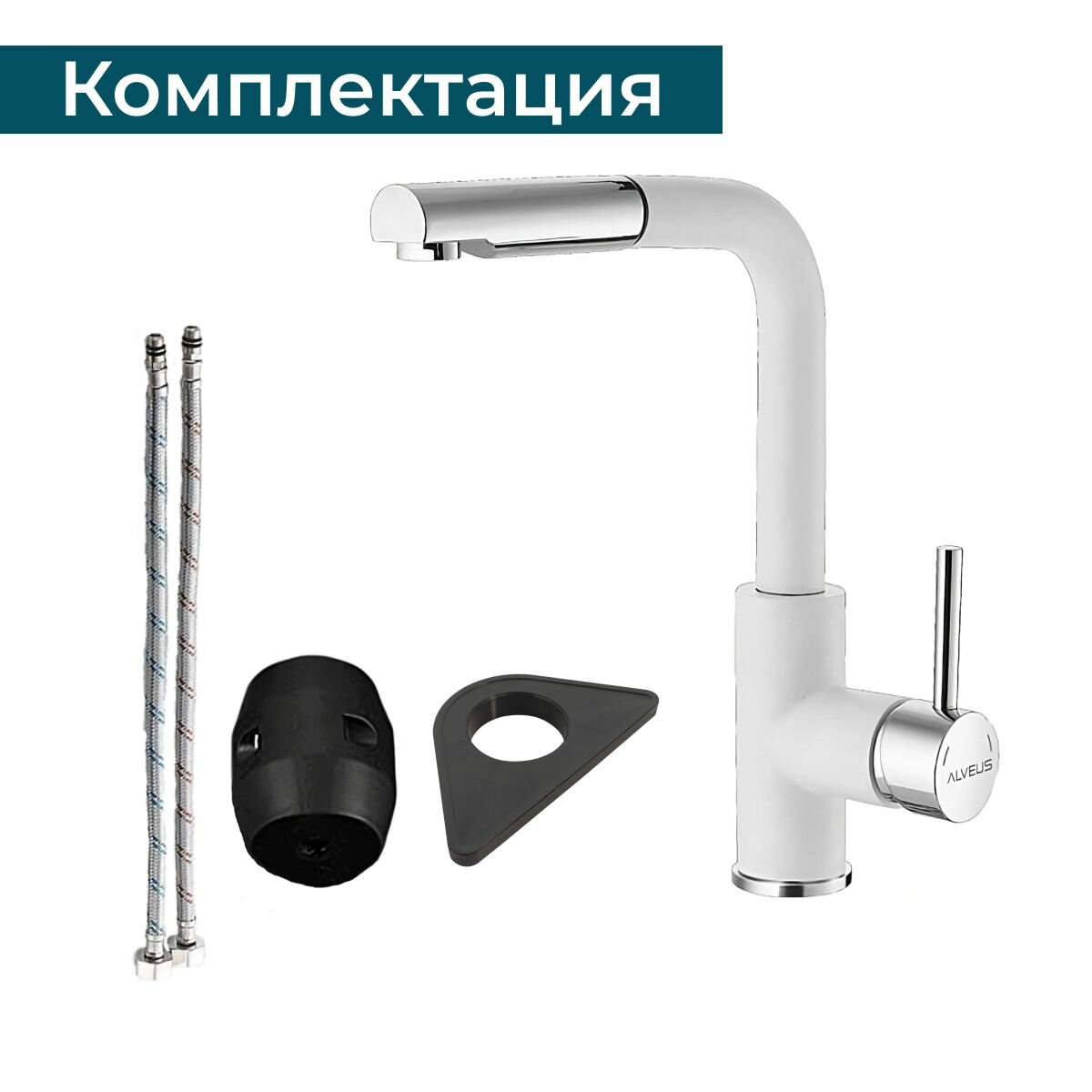 Alveus Смеситель кран для кухни для раковины с выдвижным гибким изливом ALVEUS SIROS - P G11 ARCTIC белый смеситель в Баштанка