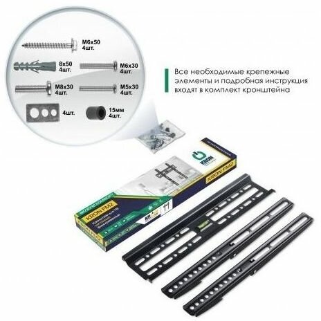 Для телевизоров Без бренда Кронштейн ONKRON FM2, для ТВ, фиксированный, 32"-65", 30 мм от стены, черный