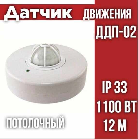 Датчик движения потолочный ДДП-02 1100Вт, 5-480с, 2-12м, 5+Лк, 160(сбоку)+360(сверху) гр, IP33 TDM