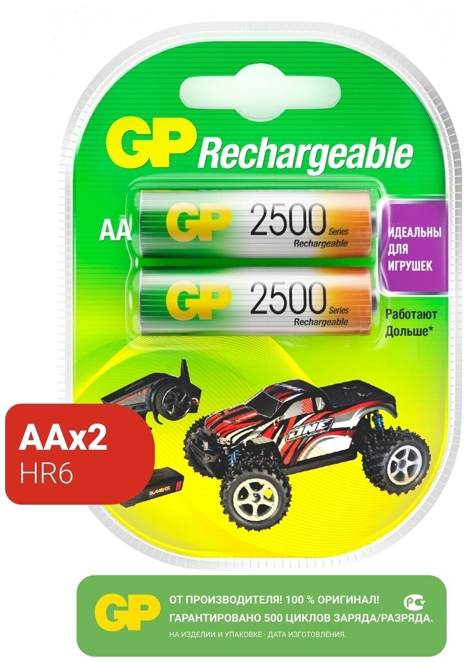 Аккумулятор Ni-Mh 2500 мА·ч 1.2 В GP Rechargeable 2500 series AA, в упаковке: 2 шт.
