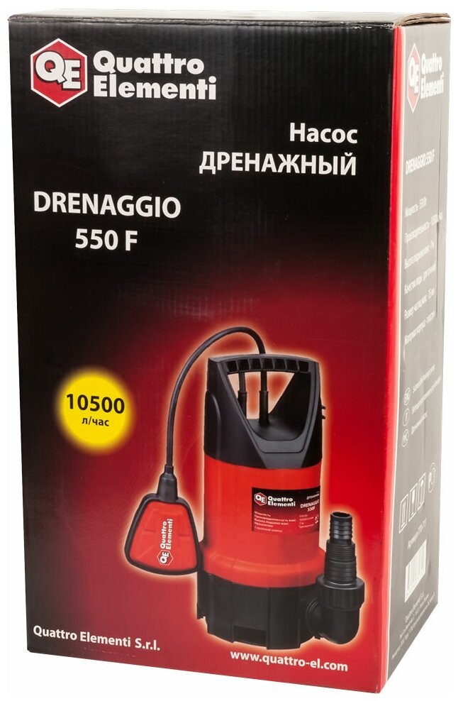 Дренажный насос QUATTRO ELEMENTI Drenaggio 550 F (550 Вт, 10500 л/ч, для грязной, 7 м, 4,75кг)