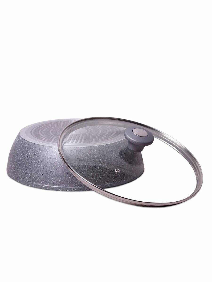 Сковорода 28 см. из алюминия с крышкой Kamille KM-4273GR с мраморным покрытием (28 см. / серый)