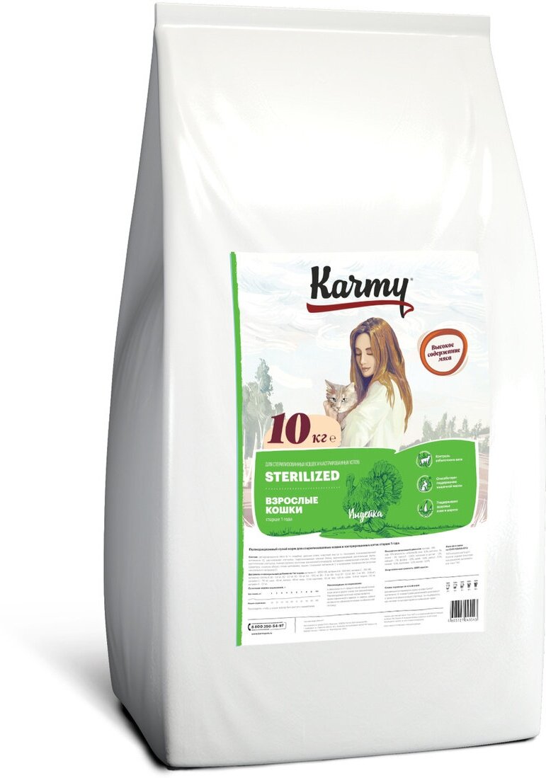 Корм Karmy Sterilized для стерилизованных кошек, с индейкой, 10 кг