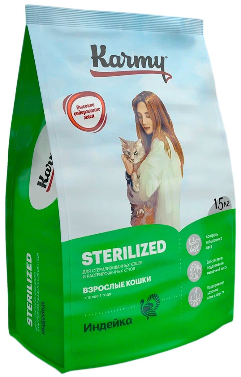 Сухой корм для стерилизованных кошек Karmy Sterilized, индейка 1.5 кг