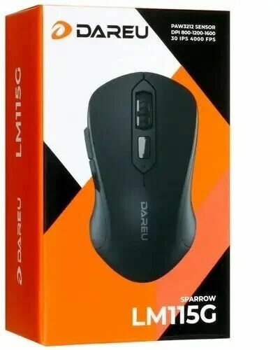 Мышь беспроводная Dareu Lm115g Black (черный), DPI 800/1200/1600, ресивер 2.4GHz, размер 107x59x38мм