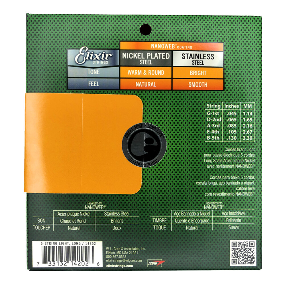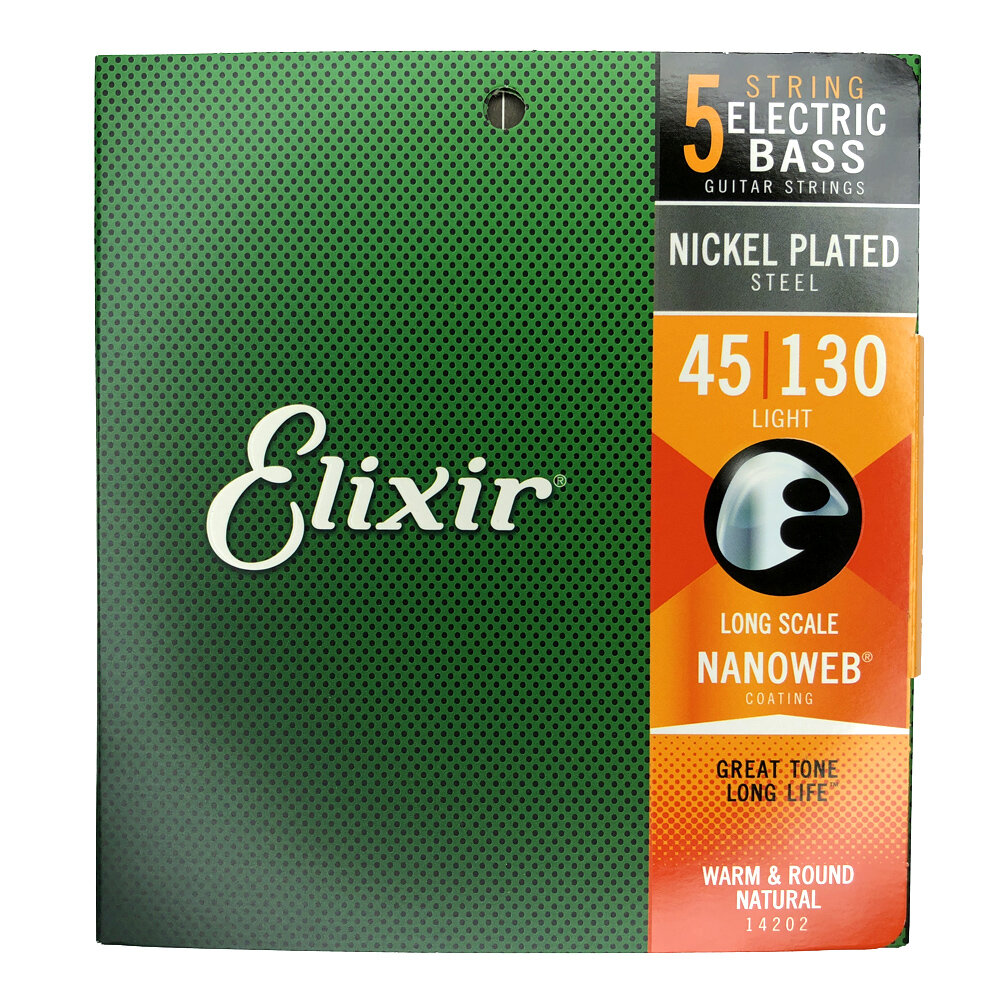 Струны для бас гитары Elixir 14202 NANOWEB Nickel Plated Steel Light 45-130, 5 струн