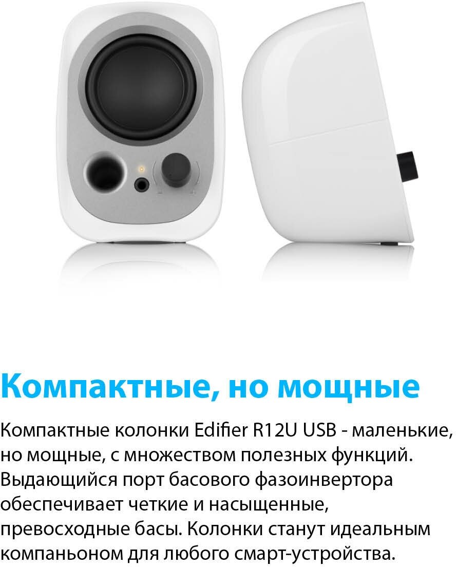Колонки Edifier R12U white мощность 4 Вт чёрные