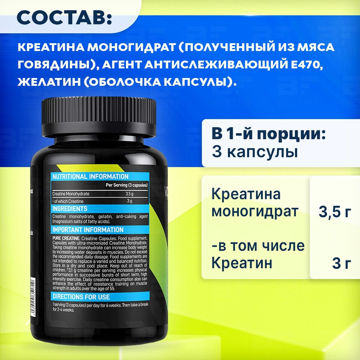 Креатин моногидрат VPLAB Creatine, 90 капсул / Для набора мышечной массы и выносливости / Для взрослых, мужчин и женщин