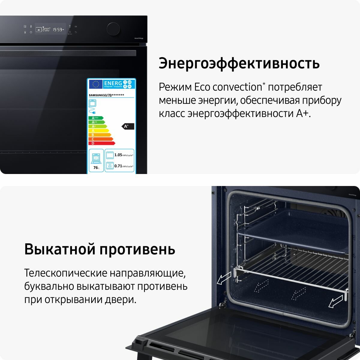 Samsung Электрический духовой шкаф Samsung NV7B4125ZAK/WT, 76 л., с 20 автоматическими программами, LED-дисплеем, таймером и WI-FI подключением духовые шкафы в Борисполь
