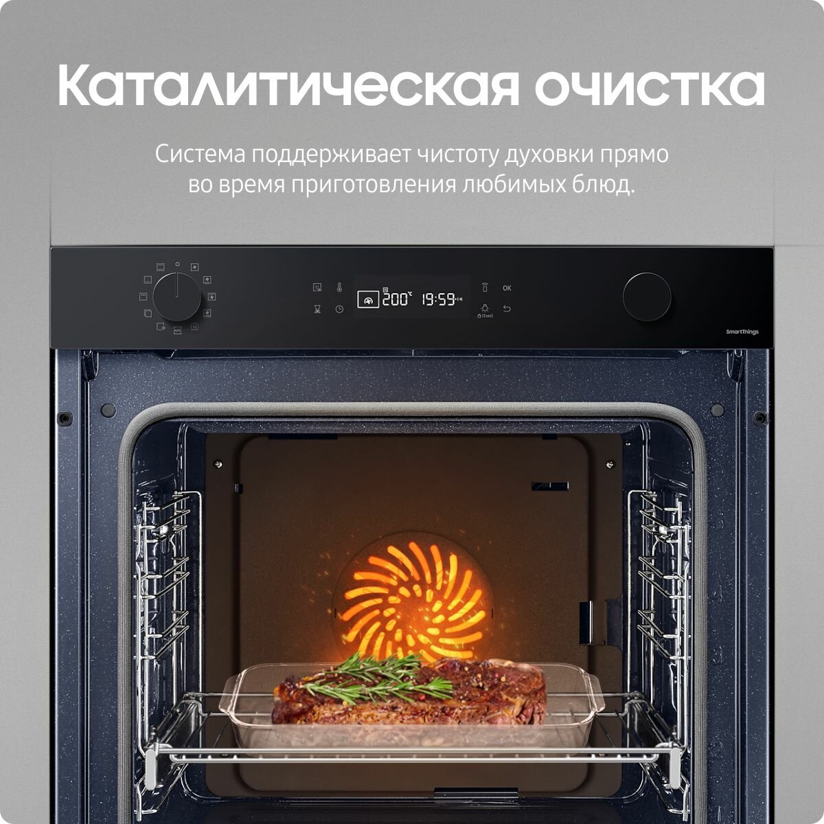 Электрический духовой шкаф Samsung NV68A1145CS/WT, встраиваемый, 68 л, с конвекцией и грилем, каталитической очисткой, таймером и защитой от детей, утапливаемыми переключателями, нержавеющая сталь