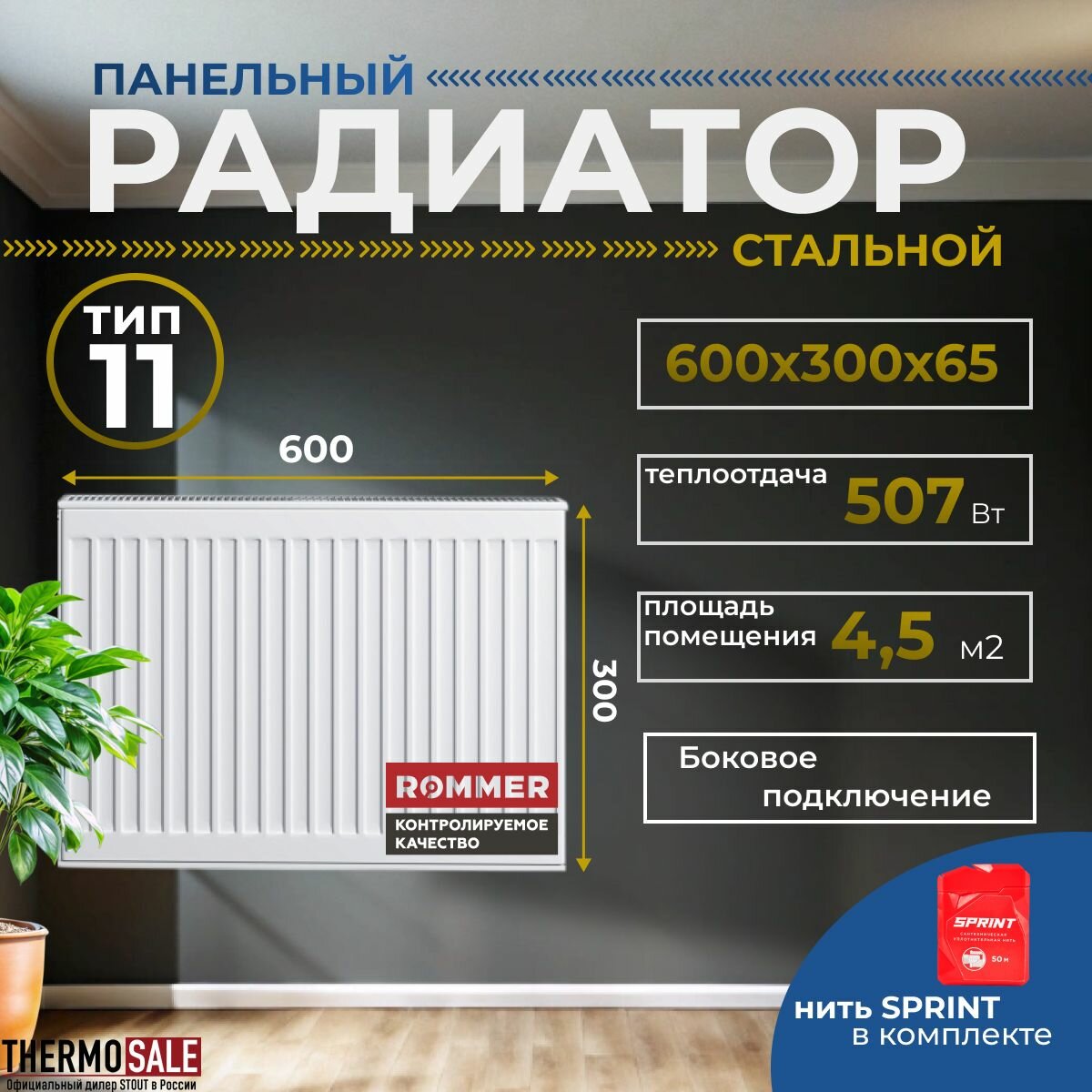 Радиатор стальной панельный ROMMER Compact 11/300/600 боковое подключение (RRS-2010-113060)