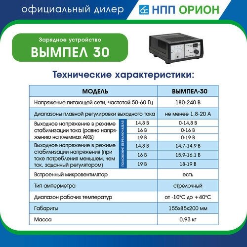 Нпп-орион 2009 2009_зарядное устройство! Вымпел-30 (автомат,0-20А, 14.8/16/19В, стрел.амперм)\