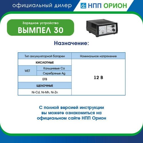 Устройство зарядное 12V 18A 220V (автомат) Вымпел 30, орион ВЫМПЕЛ30 (1 шт.)