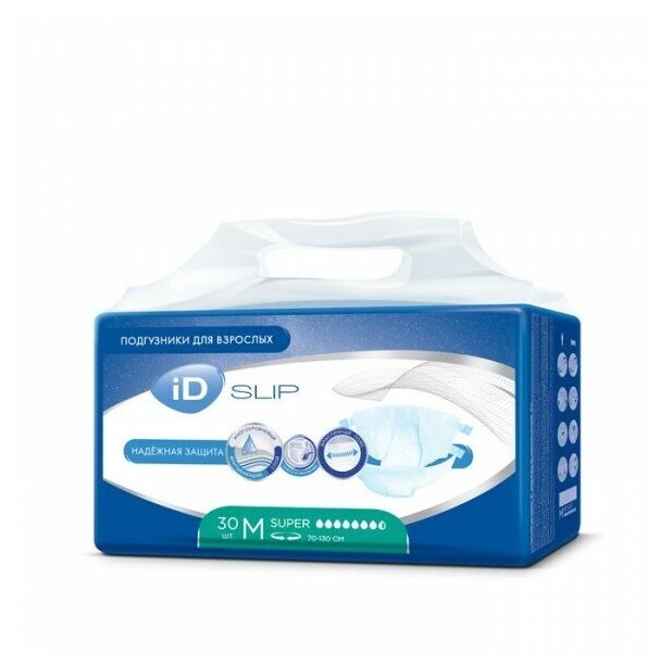 Подгузники для взрослых iD Slip Super, M, 7.5 капель, 70-130 см, 1 уп. по 30 шт.