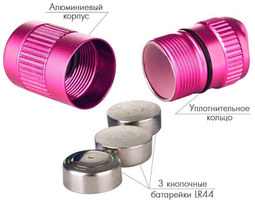 Светодиодный фонарь TANK007 E15pink с комплектацией, Розовый