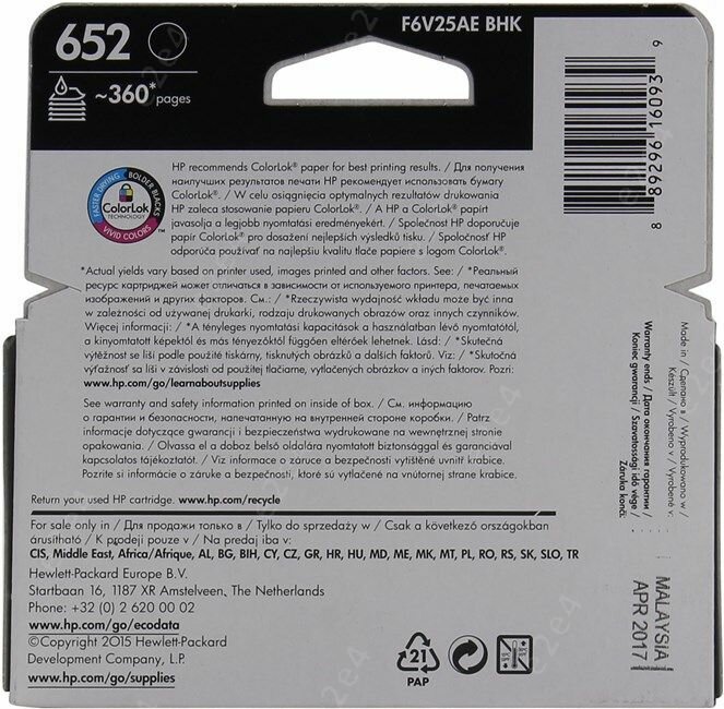 Картридж оригинальный HP 652 F6V25AE (360 страниц) черный