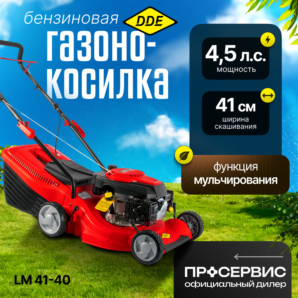 Бензиновая газонокосилка DDE LM 41-40 (4.5 л.с., 41 см ширина скашивания), 791-912