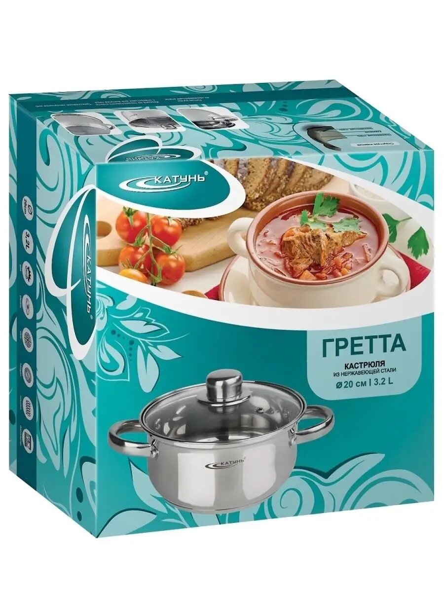 Katun Кастрюля 3,2 л катунь, гретта, КТ04-D-30, нерж. сталь, зеркальная полировка кастрюля в Борисполь