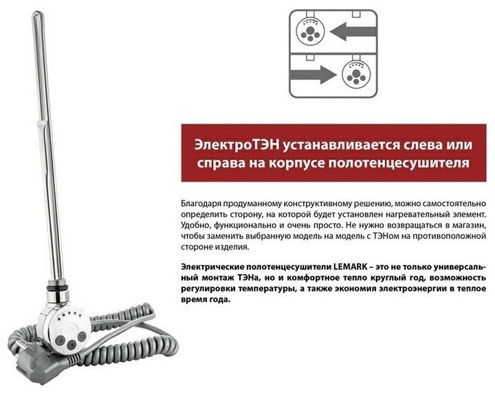 Электрический полотенцесушитель Lemark Pramen П10 LM33810E 500x800, левый/правый