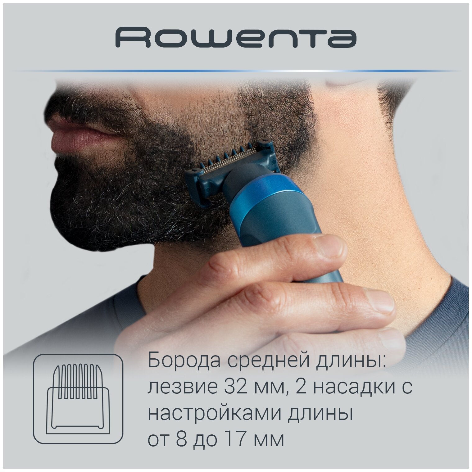 Rowenta Триммер Rowenta TN6200F4, для бороды, 7 насадок, АКБ, черно-синий