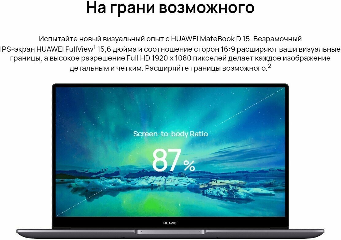 Huawei MateBook D 15 BOD-WDI9 космический серый RU 53013PLV