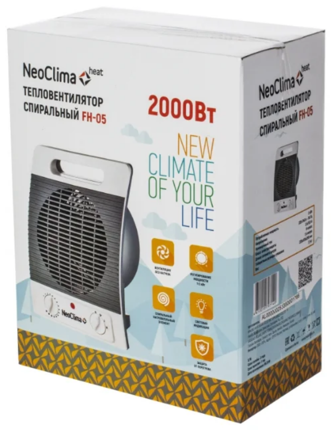 Напольный воздухообогреватель для дома NeoClima FH-05 (мощность 2000 вт, вес 0.9 кг, встроенный термостат)
