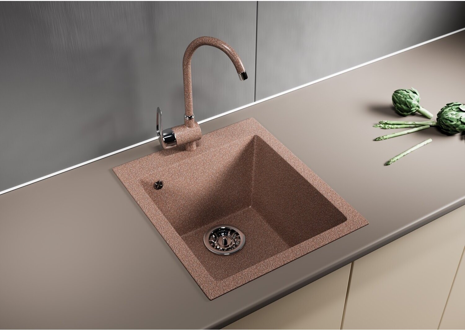 Мойка для кухни из искусственного мрамора, прямоугольная, с сифоном, MIXLINE ML-GM 14, песочная