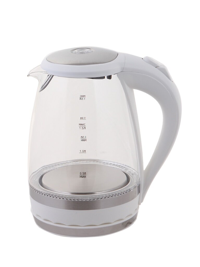 Чайник электрический Delta DL-1202 стекло белый 1,5л 2200Вт