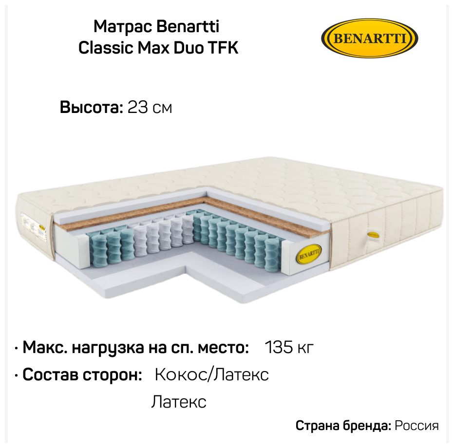 Матрас Benartti Classic Max Duo TFK, Размер 175х180 см