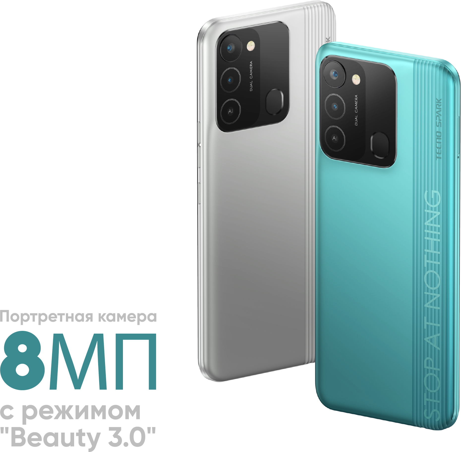 Смартфон TECNO 8C 4/64Gb, бирюзовый (KG5N 4+64 TURQUOISE CYAN)