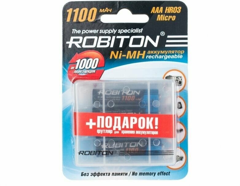 Аккумулятор Robiton AAA 1100 mAh (уп 4 шт) + футляр 4607075943278 .
