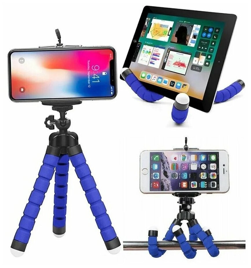 Штатив-трипод на гибких ножках для смартфона (синий)
