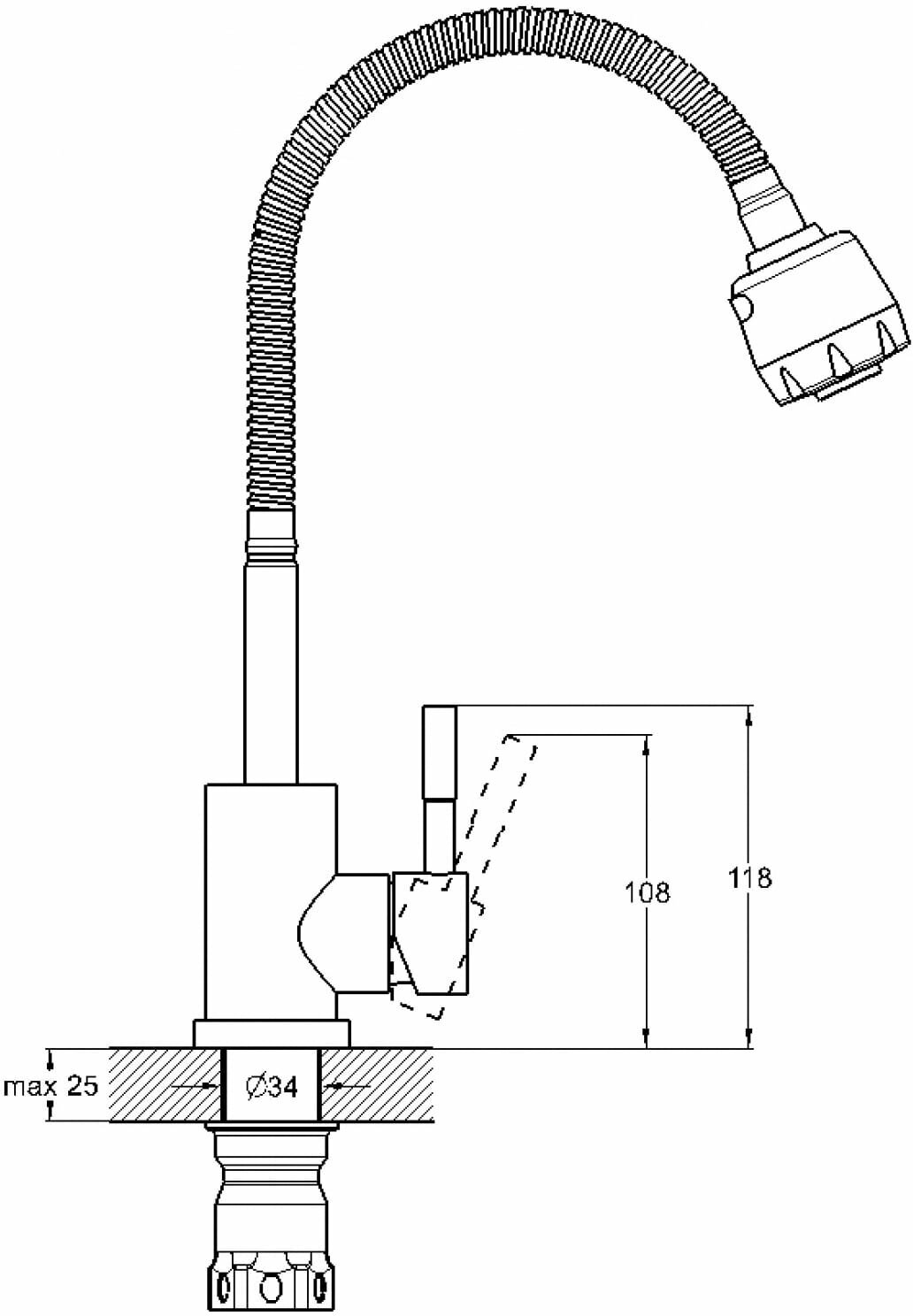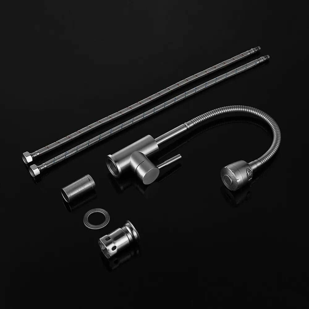 Смеситель д/кухни, 1-ручк, к35, с гибким изливом, нерж сталь, Solone (Китай), арт EZA4-A090
