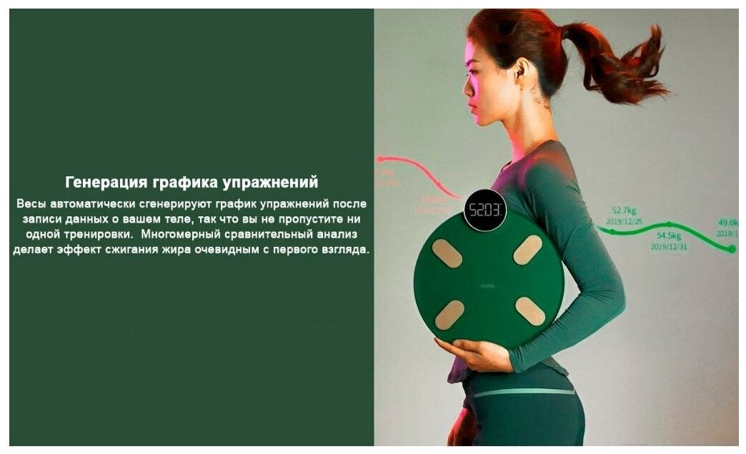 Умные диагностические электронные весы Haylou Smart Body Fat Scale (Green) / Встроенный аккумулятор / 18 различных показателей