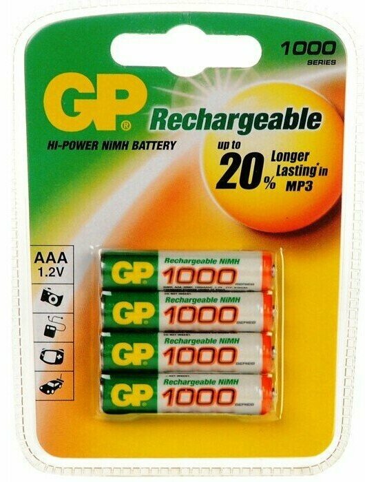 GP AAA (HR03) 1000 mAh | 1,2 вольта, Аккумулятор (NiMH) - 4шт