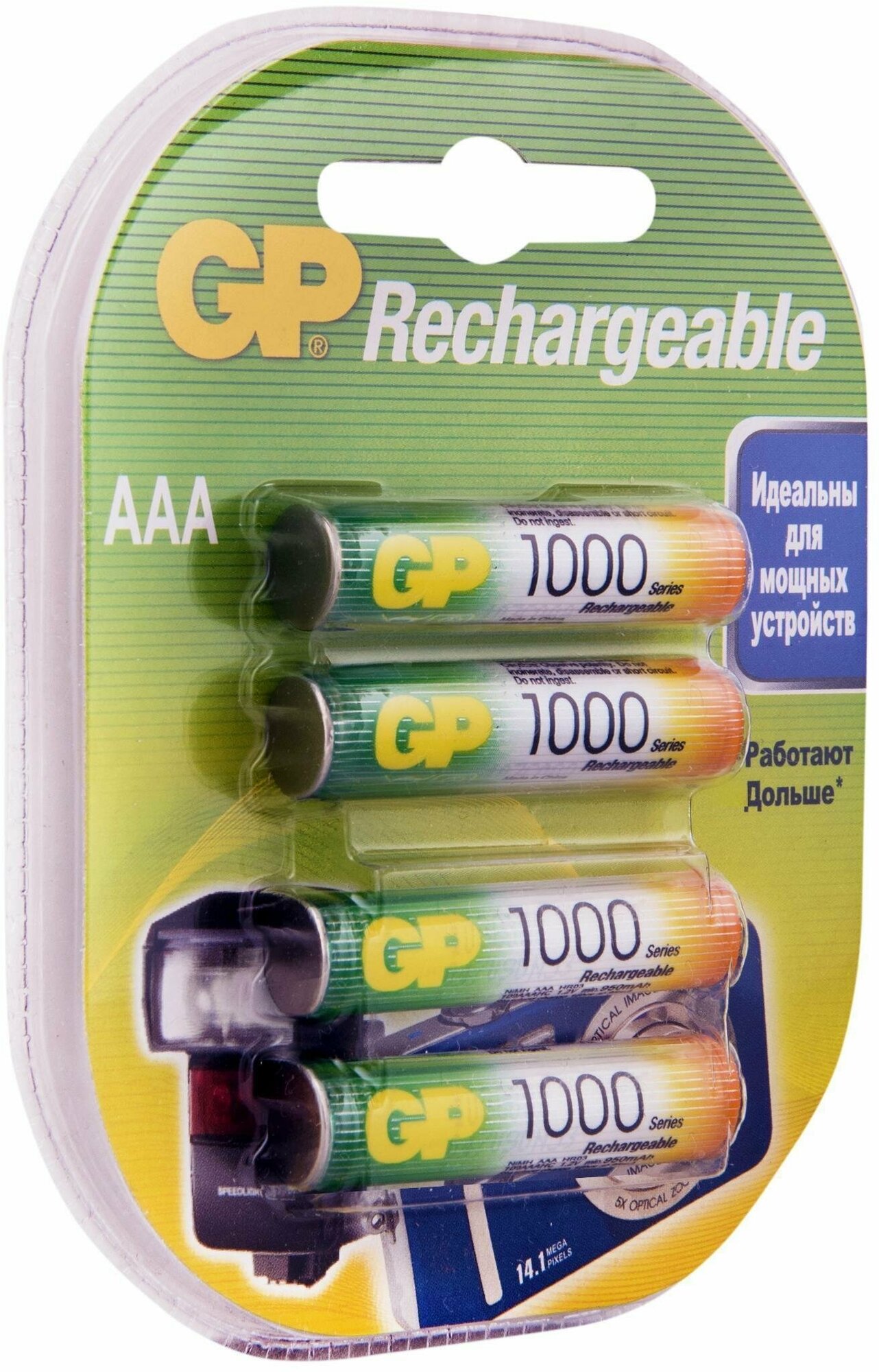 Аккумулятор GP Rechargeable 100AAAHC3/1-5CR4, Ni-MH, типоразмер ААА, 1000 мАч, 1,2 В, 4 шт