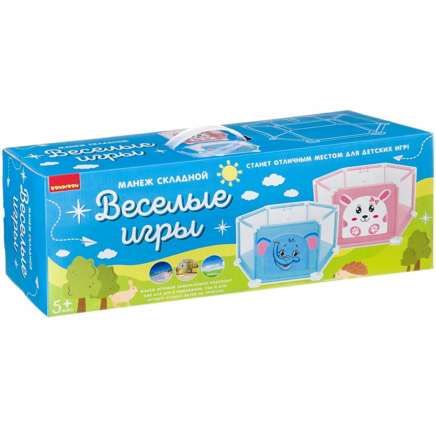 Манеж складной Bondibon "весёлые игры", голубой, 125 см, BOX