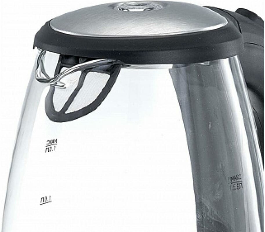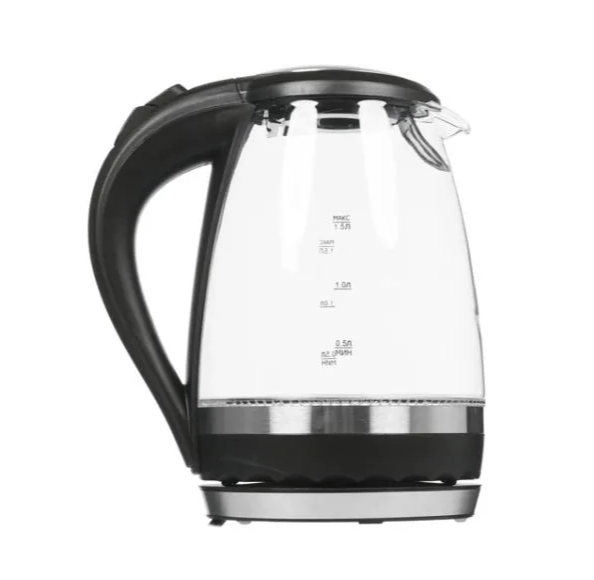 Чайник DELTA DL-1202, корпус из жаропр. стекла, черный: 2200 Вт, 1,5 л