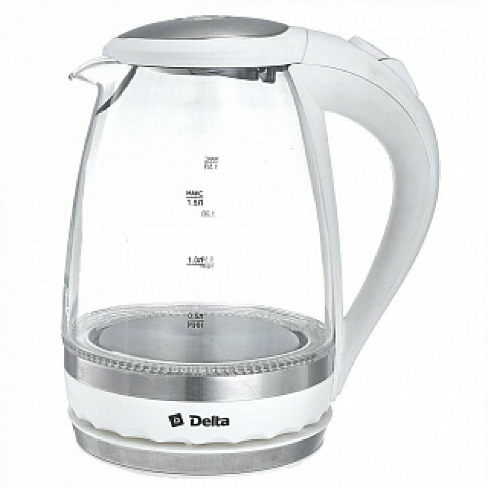 Чайник электрический Delta DL-1202 стекло белый 1,5л 2200Вт