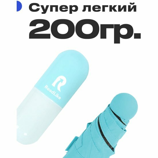 Мини-зонт Roadlike, механика, 3 сложения, купол 88 см., 6 спиц, чехол в комплекте, голубой