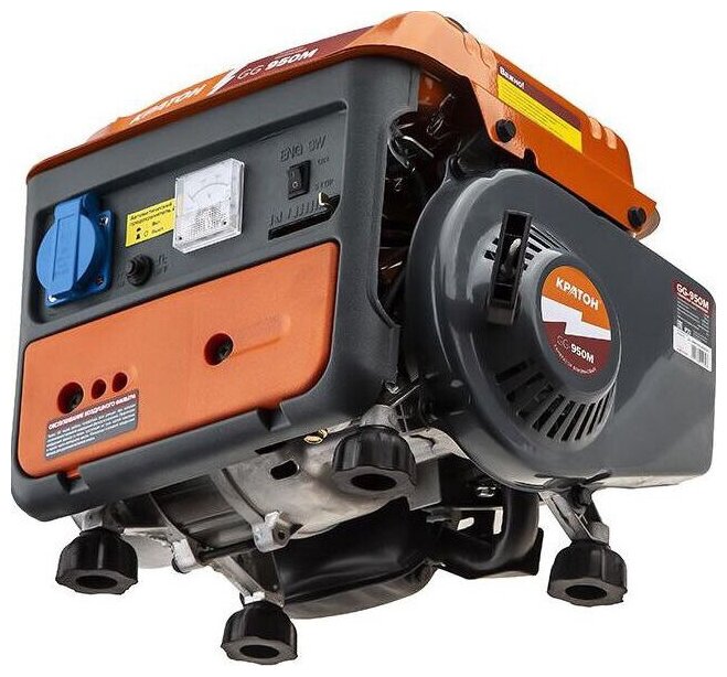 Генератор бензиновый двухтактный для дома Кратон GG-950M, медь, 0.7 кВт, 220В, 1 розетка, ручной стартер