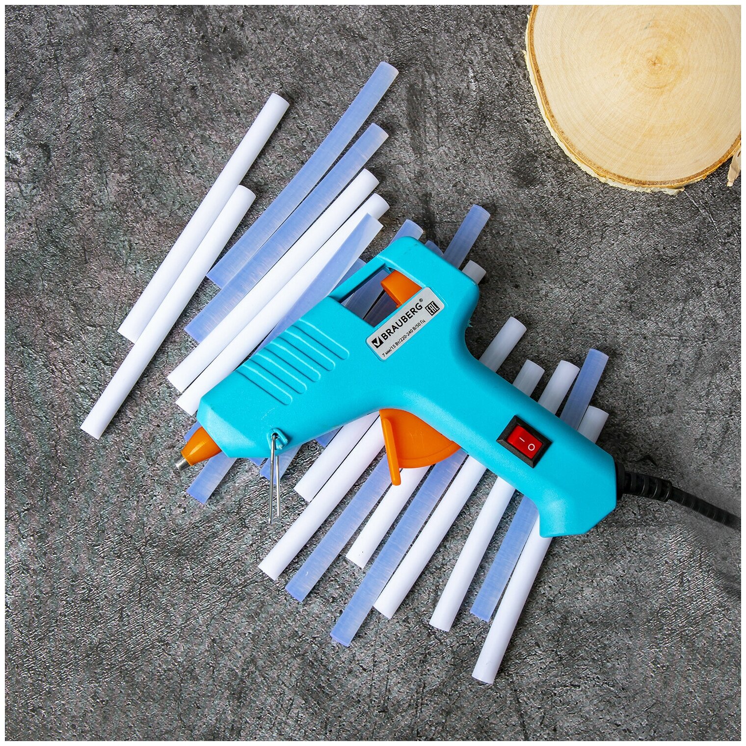 Клеевой пистолет 15 Вт для стержня 7 мм, комплект 20 стержней (10 белых + 10 прозрачных), BRAUBERG, 671052, 671052