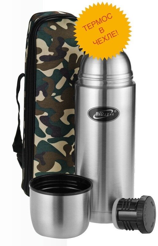 Термос биосталь Охота NBP-1000 B с термочехлом, 1,0л, серебристый