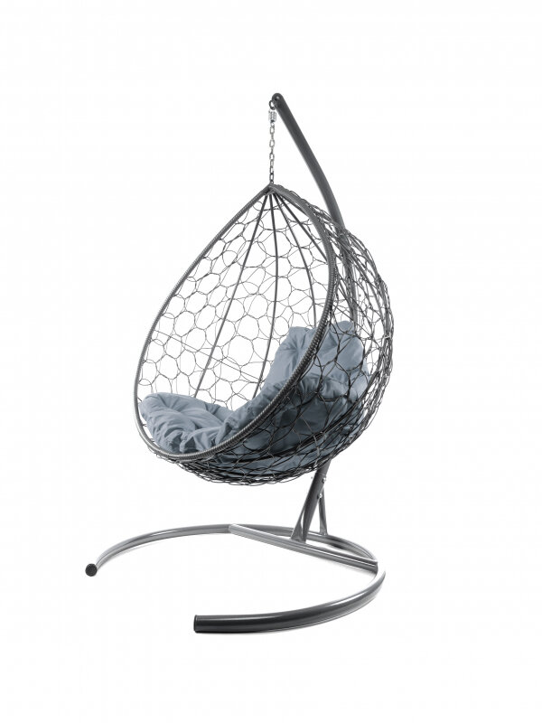 Подвесное кресло капля ротанг серое (без стойки), серая подушка