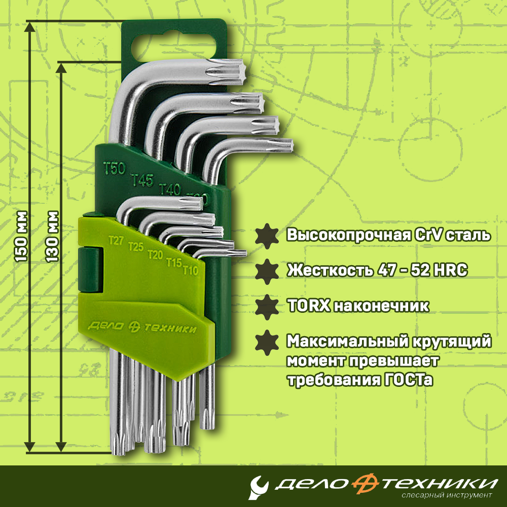 Delo Tehniki Набор ключей угловых TORX коротких (Т10,Т15,Т20,Т25,Т27,Т30,Т40,Т45,Т50) 9 шт. набор инструментов в Борисполь