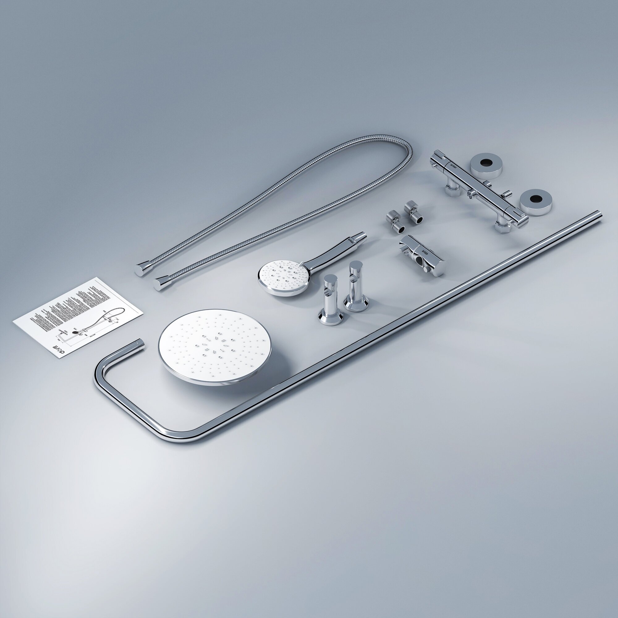 Душевой комплект Dorff Futura D0710500 с тропическим душем, со смесителем термостатом и поворотным встроенным изливом, хром