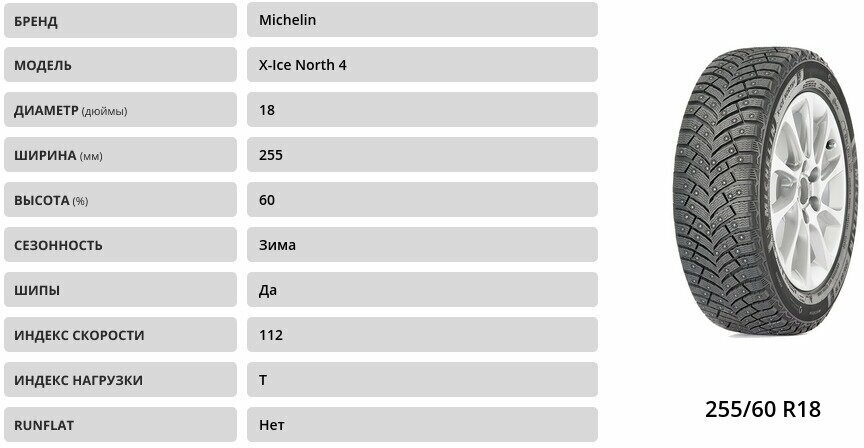 Шины Michelin X-Ice North 4 SUV шип 255/55/R18 109T